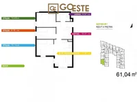 Квартира площадью 61,04 м2 расположена на 5 этаже, 5 этаже здания с лифтом.