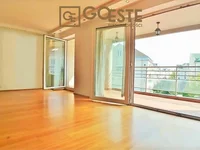 Двухэтажная квартира площадью 160,8 м2 (площадь этажа 166,9 м2), состоящая из 5 комнат, расположенных на 2-м и 3-м этажах в 4-этажном здании с 2000 года с лифтом до уровня гаража.