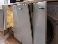 Кухня также оснащена новым оборудованием: посудомоечной машиной, холодильником и стиральной машиной.