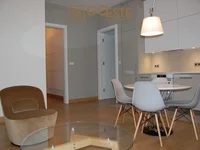 Квартира полностью оборудована и меблирована, закончена в высоком стандарте. В кухонных шкафах и новых приборах: холодильник, посудомоечная машина, печь с микроволновой функцией, индукционная пластина, капот. Ванная комната с ванной и стиральной машиной. В гостиной удобный диван, стул и кофейный столик. В спальне, кровать шириной 1,4 м и шкаф. В зале есть гардероб. Окна идут на запад и север. Подключение к Интернету возможно.