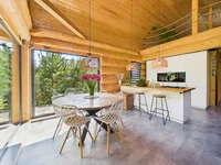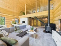 Продается красивый дом с деревянным шаром, расположенный в тихом и живописном районе, прямо у леса.