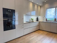 Современная кухня, открытая на гостиную