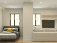-Прихожая, гостиная, спальная зона, совмещенная с гостиной и кухней, ванная комната и оборудованная кухня open-space.