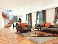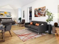 Квартира имеет большую социальную зону с гостиной и закрытой кухней, общей ванной комнатой и коридором, ведущим в спальную зону, а именно просторный люкс площадью 35 кв.м и вторую спальню площадью 16 кв.м.