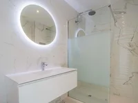 На верхнем этаже мы находим две спальни со шкафами и балконами, спальню с ванной комнатой с душем, шкафом и балконом, а также служебную ванную комнату.