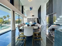 При входе вас встречает просторная открытая гостиная и столовая с элегантной освещенной двойной лестницей. Панорамный вид на море, высокие потолки, которые очаровывают на первый взгляд, и широкие раздвижные стеклянные двери, которые открываются на великолепный бассейн с соленой водой и открытые зоны отдыха, создают беспрецедентное чувство свободы.