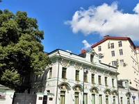 Двухэтажный ампирный особняк с мезонином, который был воссоздан по единственному сохранившемуся на боковом фасаде фрагменту.