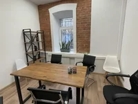 Интерьер выполнен в популярном стиле лофт, создавая приятную творческую атмосферу.
