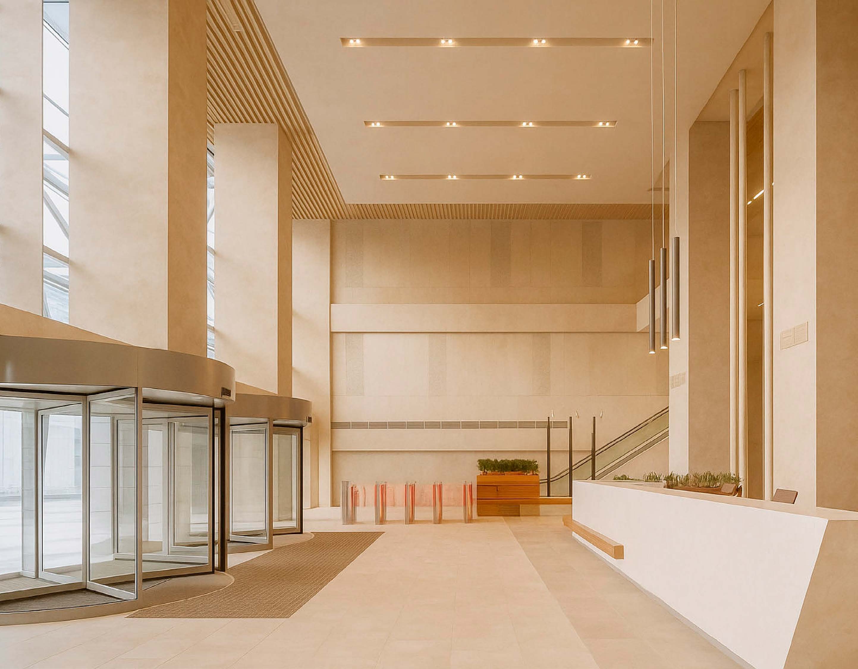 Приточно-вытяжная вентиляция. Центральное кондиционирование. Пожарная сигнализация. Интернет, телефония. Охрана. Видеонаблюдение. Система контроля доступа. Лифты: 8 шт.. Подземная парковка.