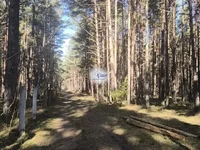 Земельный участок на территории Куршской косы в окружении соснового леса и песчаных дюн.