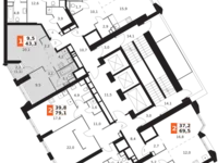 Продаётся 2-к квартира №1267 в сданном корпусе общей площадью 43.3 кв.м на 46-м этаже 47 этажного дома.