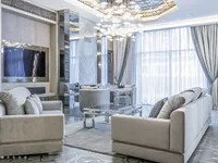 Просторные апартаменты с 3-мя спальнями общей площадью 197 м² в клубном доме MonCher в районе Якиманка. В апартаментах выполнен дизайнерский ремонт в холодных оттенках, в отделке использованы премиальные материалы — дерево, мрамор.