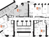 Продаётся 3-к квартира №1337 в сданном корпусе общей площадью 96.8 кв.м на 16-м этаже 47 этажного дома.