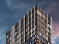 Силуэты трех тонких монолитных башен увенчаны светящейся янтарной «короной». На контрасте со строгими пропорциями башен, над стилобатом, как драгоценные камни, парят два невысоких объема с медным и золотым фасадами сложной формы. Весь комплекс как будто высечен из одной горной породы. Натуральный камень с фасадов башен переходит в благоустройство, мощение двора и в интерьер лобби. Это создаёт ощущение целостности, монументальности и спокойствия. От дальних городских видовых точек до деталей фасада и интерьера – во всём чувственный функционализм.