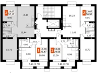 Продаётся 2-к квартира №49 общей площадью 57.17 кв.м на 3-м этаже 4 этажного дома. Без отделки.
