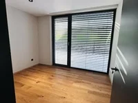 Отделка, материалы, системы : керамика и паркет высочайшего качества, трехслойные панорамные окна, электрические жалюзи. Входная дверь: противовзломная, звукоизолированная в пожарном исполнении, с многоточечным закрыванием и соответствующей противопожарной защитой, открывание также по отпечатку пальца. Фасад - система jubizol. Пол с подогревом. Тепловой насос с геозондом. Вентиляционное устройство с рекуперацией воздуха (Zehnder). Станция биологической очистки.