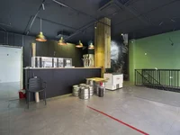 На первом (входном) этаже ресторана расположена просторная зона площадью более 100 м², включающая бар, кухню с предварительной установкой дымоотвода и туалеты, адаптированным для людей с ограниченными физическими возможностями.