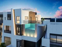 The modern-style residential complex is made up of 8 apartments with separate entrances, 2 and 3 bedrooms, with a large garden or solarium area. A building with a commercial space on the ground floor and 2 3-bedroom apartments with a large terrace and solarium area. It also has an impressive rooftop pool and garage spaces in the basement.
