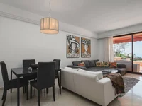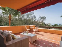 Spacious first floor apartment situated in a gated community on the Ronda Road, just below Monte Halcones comercial centre. This bright apartment comprises a large living/ dining room with access to a partially covered terrace with panoramic sea views and the perfectly maintained gardens; separate fully fitted and equipped kitchen; two double bedrooms, one of which en-suite and guest toilet. Some of the features include hot and cold air conditioning, and a parking space & storage room situated in the underground communal garage. The location of the apartment within the complex provides total tranquillity and lovely views. The community is very well kept and offers landscaped gardens and a swimming pool. Located 5 minutes drive to beach and San Pedro and a short walk to the Monte Halcones comercial centres with supermarkets, restaurants and bars. A very private apartment in a sought-after community in Benahavis.