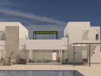 Внутри этой роскошной виллы на первом этаже есть 4 большие спальни, все со встроенными шкафами, 2 ванные комнаты с душевыми кабинами, оборудованная кухня открытой планировки и обеденная зона с островом, а также просторная гостиная с большими окнами во французском стиле, ведущие к частному бассейну.