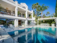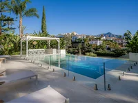 Эта современная вилла в эксклюзивном охраняемом поселке Эль-Эррохо предлагает превосходное расположение с потрясающим видом на поле для гольфа и гору Ла-Конча.