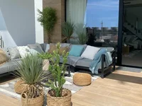 Вилла с 3 спальнями в Финестрате с частным бассейном в эксклюзивном жилом комплексе вилл, расположенном в Финестрате недалеко от замечательных пляжей Бенидорма. Вилла построена на двух этажах. На первом этаже находится светлая полностью меблированная гостиная рядом с кухней в американском стиле со всей бытовой техникой, с большими окнами от пола до потолка и прямым выходом на полукрытую террасу и большой частный бассейн и сад, а также полностью меблированная спальня со встроенным шкафом, ванная комната и прачечная. На втором этаже, откуда мы попадаем в дом, находятся две полностью меблированные спальни с ванными комнатами и встроенными шкафами, с выходом на открытую террасу. Жилой комплекс расположен в 5 минутах езды от всех услуг, предлагаемых Бенидормом и Финестратом, таких как торговый центр La Marina, трамвайная остановка, с которой можно добраться до Аликанте и Кальпе, в окружении со среднегодовой температурой 20ºc и 300 солнечных дней в году, в 44 км от аэропорта Аликанте, в 3 км от моря и в 200 метрах от поля для гольфа.