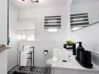 Эта красиво отремонтированная двухкомнатная квартира на верхнем этаже сочетает в себе современный комфорт и отличное местоположение. Открытая гостиная с кухней и барной стойкой создаёт идеальную атмосферу для отдыха. В главной спальне — двуспальная кровать, а в гостевой — двухъярусная кровать. Современная ванная комната оснащена просторной душевой кабиной.
