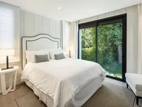 Главная спальня на верхнем этаже является настоящим убежищем с собственной террасой, гардеробной и ванной комнатой в стиле спа. С её возвышенного положения открываются панорамные виды на окружающую природу, создавая ощущение полного спокойствия.