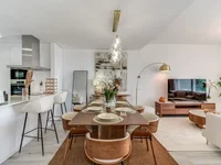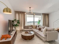 При входе вас встретят высококачественная мебель, которая сочетает в себе современный стиль и уют. Южная ориентация обеспечивает обилие естественного света на протяжении всего дня, создавая светлую и уютную атмосферу. Открытая кухня идеально подходит для приема гостей, плавно соединяясь с просторной гостиной, в то время как главная спальня оборудована роскошной гардеробной, предлагающей достаточно места для хранения и удобства.