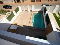 НОВЫЕ ТАУНХАУСЫ В САН-ХАВЬЕРЕ Новый роскошный комплекс из 24 одноуровневых или двухэтажных вилл с частным бассейном, террасой и солярием с летней кухней, что позволит вам наслаждаться солнечными часами каждый день в году. Каждая вилла имеет 2 или 3 спальни и 2 оборудованные ванные комнаты на одном уровне или 3 спальни и 3 оборудованные ванные комнаты на двух уровнях. Дизайн выполнен в современном стиле и имеет открытую планировку, включающую полностью оборудованную кухню и гостиную-столовую. Комплекс расположен в Сан-Хавьере (Мурсия), недалеко от пляжа, в окружении услуг, парков, спортивных сооружений и нескольких гольф-полей. Недвижимость будет соответствовать самым высоким стандартам и будет оборудована: Частный бассейн с душем. Кухня полностью меблирована и оборудована духовкой, микроволновой печью, холодильником, встроенной посудомоечной машиной, плитой и вытяжкой. Освещение: внутри дома (столовая, кухня, коридоры и ванные комнаты), а также на открытых площадках. Встроенные шкафы с выдвижными ящиками. Полностью оборудованные ванные комнаты с туалетом, тумбой, зеркалом и душем с экраном. Предварительная установка для канального кондиционера. Солярий с летней кухней. Парковочное место на участке. Сан Хавьер находится рядом со всеми удобствами, с легким доступом к пляжу, водным видам спорта, магазинам и транспортной сети. Здесь вы сможете насладиться всеми удобствами, которые может предложить Сан Хавьер, такими как местные магазины, бары и рестораны, а также недалеко от торговых центров, аэропорта Мурсии и всех красивых мест, которые можно найти вдоль Мар Менор. Аэропорт Корвера/Мурсия находится в 30 минутах езды, а аэропорт Аликанте - в 45 минутах езды.