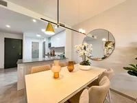 Салон с обеденной зоной, американская кухня, 3 спальни, 2 санузла, один из которых ан-сюит, в санузлах полы с подогревом, терраса 14 м2, южная сторона, 2-й этаж (по-русски - 3), предустановка системы кондиционирования. В комплексе есть общий бассейн, детский бассейн, парковочные места.