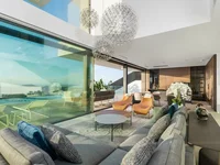 Вилла произведение искуства. Лучшее место в самом шикарном поселке на Коста-Бланке, Сиерра Кортина. Отделочные материалы и качество отделки класса ультра. Великолепный проект, который полностью соответствует рельефу местности и позволяет максимизировать виды на море и город Бенидорм. Вилла состоит из 5 этажей. Первый цокольный этаж представляет из себя огромный гараж, в котором с легкостью поместятся несколько машин и хватит места на небольшую мастерскую. На втором цокольном этаже расположена комната отдыха, которую можно использовать под домашний кинотеатр, винотеку или игровую комнату. Для удобства гостей на этом этаже, также есть ванная комната. На первом этаже расположен просторный салон, кухня открытого типа и столовая зона с видами на море. На этом уровне находится бассейн, зона барбекю и столовая зона под открытым небом. На втором этаже находятся четыре великолепные спальни, все со своими ванными комнатами и гардеробами. Три из них имеют панорамные виды на море! На последнем уровне находится солярий с зоной СПА, которая включает в себя сауну и гидромассажную ванну. В доме установлен лифт, система умный дом последнего поколения, система видеонаблюдения и сигнализация. Отопление дома происходит через теплый пол, на крыше установлены солнечные батареи для нагрева воды. Это одна из самых шикарных вилл на Коста-Бланке.