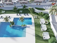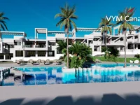 Бунгало на верхнем этаже имеют 2 спальни и 2 ванные комнаты. Американская кухня, терраса и солярий на верхнем этаже с прекрасным видом на море, горы и город Бенидорм. Те, что на первом этаже, имеют 2 большие террасы и прямой выход к бассейну.