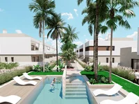 Апартаменты в современном стиле в закрытом комплексе от застройщика в районе La Serena Golf, Los Alcázeres.Квартира на нижнем этаже площадью 100,86 кв.м. состоит из трех спален, двух ванных комнат, гостиной с открытой кухней, просторной террасы площадью 49,50 кв.м., на которой можно любоваться шикарными видами на поле для гольфа и море Мар Менор. В стоимость включено парковочное место.Кухня: Функциональный дизайн кухни сочетается с современной мебелью и продуманной организацией пространства. Столешницы из высокопрочного кварца или гранита не только эстетичны, но и легки в уходе. Кухня полностью укомплектована необходимой бытовой техникой, включая вытяжку и керамическую плиту.Ванные комнаты: Отличаются белой керамической сантехникой современного дизайна. Здесь установлены душевые кабины из закаленного стекла и однорычажные смесители от ведущих брендов. Подвесная мебель для умывальника дополняется зеркалом со светодиодной подсветкой, соответствующей общему стилю. На полах и стенах использованы высококачественные покрытия, сочетающие в себе элегантность и практичность.Жители могут наслаждаться общим бассейном и ландшафтными садами, созданными для отдыха и релаксации. Частные сады, отделанные искусственной травой, гармонично дополняют каждую виллу.Для вашего удобства предусмотрено подземное парковочное место с предварительной установкой для зарядки электромобилей, а также индивидуальное складское помещение для каждого дома.Возможен онлайн резерв, а также покупка в кредит под 3-6 %. Покупая недвижимость в Испании, можно оформить вид на жительство. Наша компания помогает оформить ВНЖ любого типа.