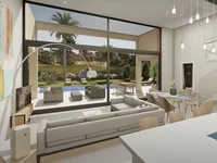 Особенности включают внутреннюю приемную, которая открывается в обширную гостиную/столовую и кухню открытой планировки с "сквозным" полом, на крытые веранды, частный ландшафтный сад и бассейн, чтобы предложить комбинированное внутреннее/внешнее жилое и обеденное пространство, предназначенное для использования как единое целое в особо привилегированном климате региона.