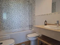 Площадь составляет 102 м2, включает 2 спальни, 3 ванных комнаты, гостиную, отдельную кухню, прачечную, террасу с садом и балкон.