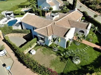 Large villa on one floor with sea views on the first line of golf, Jardines del Aguila Urb. 1,050m2 of flat plot and 450m2, 380m2 being useful.The house has three large bedrooms, the main bathroom en suite, three full bathrooms and a toilet, a large living room with a completely new American kitchen.It is a dream of a house, comfortable, practical and located in a very quiet and well connected area. The house has underfloor heating, aerothermal heating, hot water from solar panels, a saltwater pool prepared for heating, a pergola area, a BBC, a basement with a soundproofed cinema room, etc.Do not miss the opportunity and request a visit.