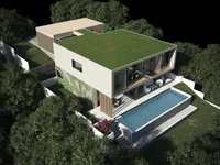Внутри виллы — светлое жилое пространство с открытой планировкой, плавно переходящее в открытые зоны, создавая гармонию между внутренней и внешней жизнью. Современная кухня оснащена высококачественной техникой и имеет элегантную отделку. Вилла оборудована эффективной системой аэротермального и лучистого потолочного отопления и охлаждения, обеспечивающей комфорт круглый год. Система климат-контроля Zehnder позволяет контролировать температуру и влажность в реальном времени, поддерживая идеальный микроклимат в помещении. В интерьере также — паркет, высококачественные окна с алюминиевыми рамами и изысканные архитектурные детали.