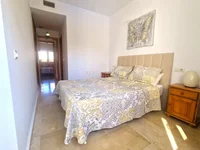 The big community swimming pool is central in the garden, and with the green lawn around, as well as palm trees, it looks really inviting. The entrance and staircase of this building is beautiful and well maintained. The apartment has integrated air conditioning, and a private parking i the garage under the building.