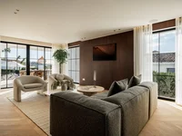 Панорамные окна соединяют интерьер с большими террасами и очень просторным садом, идеально подходящими для обедов на свежем воздухе, отдыха и встреч в спокойной зелёной обстановке. Вилла оснащена системой умного дома Lutron и водяным тёплым полом по всему дому, что гарантирует комфорт и энергоэффективность круглый год.