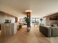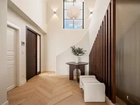Архитектура дома сочетает элегантность и функциональность, а тщательно подобранные материалы создают атмосферу уюта и изысканности. Деревянные полы «ёлочкой» проходят через основные жилые зоны, а кухня Danespan с современным дизайном и профессиональным оснащением становится центральным пространством для повседневной жизни и приёма гостей.