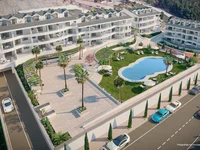 Интерьер недвижимости разработан с акцентом на качество и комфорт. Апартаменты и варианты на первом этаже имеют три спальни и две ванные комнаты, предлагая просторное и функциональное пространство. Особенности включают керамический пол, теплый пол и кондиционирование воздуха, обеспечивая комфортную атмосферу круглый год. Интегрированная система умного дома и современные бытовые приборы облегчают повседневную жизнь, а встроенные шкафы оптимизируют пространство для хранения. Кроме того, видеодомофон добавляет дополнительный уровень безопасности и удобства.