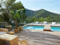 Новая современная вилла на испанском острове Ибица, в спокойном районе, неподалеку от пляжа Кала Ллонга. Дом встроен в гору и имеет 4 этажа (есть лифт между этажами). Частный бассейн, винный погреб, фитнес-зона с тренажерами, парная. К вилле примыкает гараж, но при желании его можно переоборудовать в дополнительную спальню с ванной комнатой. Подробные планы площади виллы доступны по запросу.