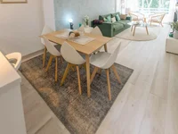 Квартира была недавно полностью отремонтирована с использованием высококачественных материалов. В ней есть: кондиционер, пол с подогревом по всей собственности, светодиодные лампы, электрические жалюзи, частный гараж, красивая кухня открытого плана с техникой Bosch.