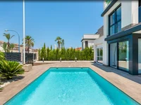Новая готовая вилла от застройщика в три этажа, общей площадью 153 м2. В доме пять комнат на основных этажах: гостиная-столовая, кухня открытого типа, четыре спальни, три ванные комнаты и цокольный этаж (можно использовать как жилое помещение, кинотеатр, спорт зал и т.д. Кухня меблирована и оборудована бытовой техникой. В ванных комнатах дизайнерская мебель и теплые полы. Дом полностью меблирован, оборудован техникой. Система кондиционирования, система умный дом, вентиляция, видеонаблюдение, интернет, ТВ, автоматические жалюзи на окнах. Собственный земельный участок 430 м2, благоустроен зонами отдыха, бассейном, зеленым насаждением. По всему периметру двора установлено освещение, противоскользящие дорожки. На крыше оборудована зона для отдыха, на которой можно загорать, жарить барбекю, наслаждаться прекрасными видами на Мар Менор.Вилла спроектирована в средиземноморском стиле, построена с использованием высококачественных материалов и имеют очень хорошую ориентацию. Вилла находится в жилом комплексе Villas del Mar, который состоит из 16 участков. Это тихий район, где можно насладиться отдыхом, и всего в 3 минутах ходьбы от пляжа Плайя Хонда. Возможна онлайн покупка, а также покупка в кредит от банка под 4-6% годовых.Покупая недвижимость в Испании, можно оформить вид на жительство. Наша компания помогает оформить ВНЖ любого типа.