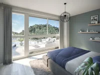 Arquitectura contemporánea y entorno paisajístico inmejorable frente al Mediterráneo se funden en Este promoción para crear una urbanización con piscina y amplias áreas verdes ajardinadas.