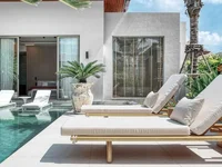 В каждой спальне есть большая гардеробная, а две из них на каждой вилле имеют прямой выход к бассейну с джакузи с подогревом и в сад.