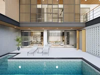 Собственный спортзал, охраняемая территория, умный дом с удаленным мониторингом, облачным приложением, умными шторами и климат-контролем, видеонаблюдение, гостевой доступ, лифт, бассейн, сад, современный стиль Лофт, виллы с 3 спальнями и 2 или 3 этажами, 4 км до пляжа Банг Тао.