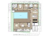 - Жилые и обеденные зоны открытого плана с естественным освещением и видом на бассейн.