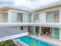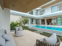 This 4-bedroom, 5-bathroom pool villa at The Teak Phuket combines timeless design with moder…